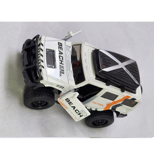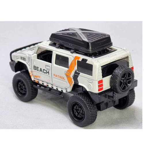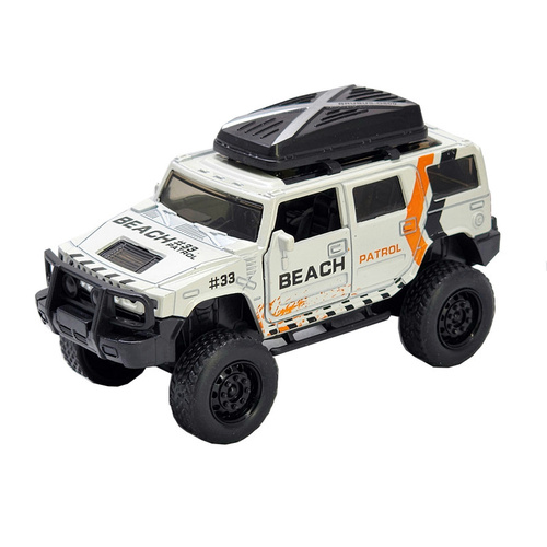 ماشین شاسی بلند فلزی آفرود هامر ساحلی میباشد دارای قابلیت: در بازشو، دارای صدای آژیر ، روشن شدن چراغ ها و حرکت به صورت عقبکش و دارای جنس فلزی باکیفیت است که شبیه سازی شده مدل واقعی می باشد و به جزئیات توجه شده است