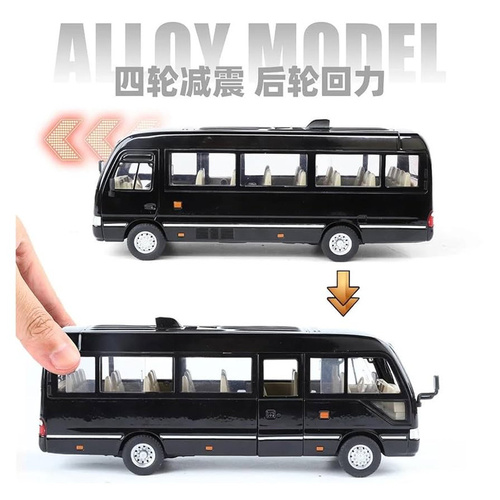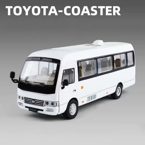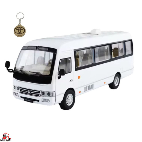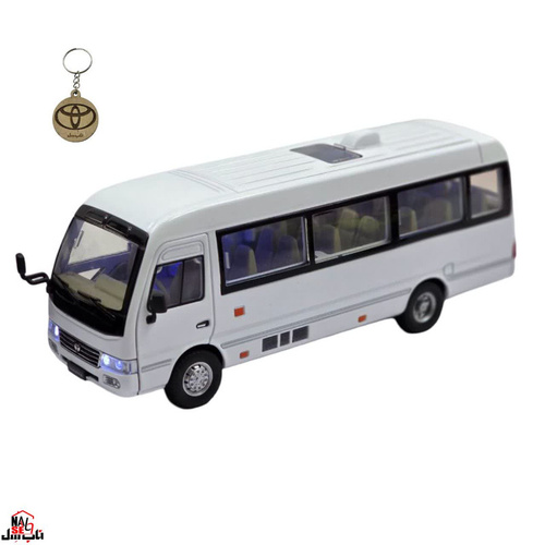 ماکت مدل مینی بوس تویوتا کاستر فلزی سانروف چراغدار موزیکال عقب کش Toyota Coaster Bus