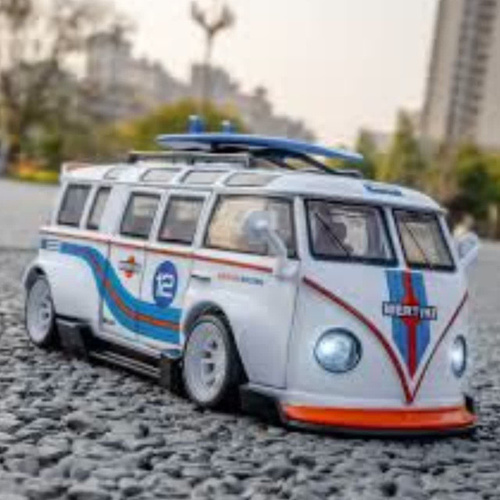 ماکت ماشین مدل فولکس اسنوبرددار فانتزی T1 سافاری موزیکال چراغدار فلزی Snowboarder Volkswagen