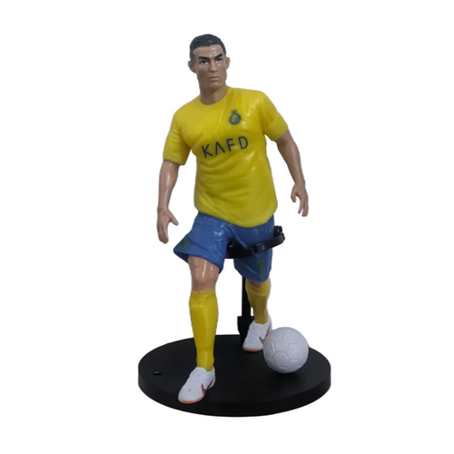 فیگور مدل کریستیانو رونالدو طرح النصر از جنس پلاستیک فشرده میباشد کیفیت ساخت بالا رنگ و چاپ ثابت میباشد به همراه پایه نگهدارنده و توپ ارتفاع 18 سانتی متر است